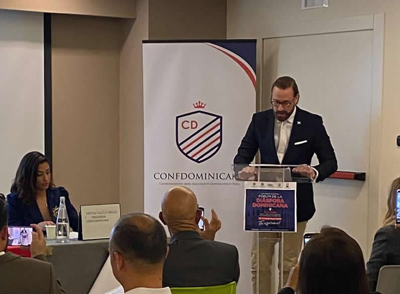 - 06 de Mayo 2022 . Rueda de Prensa del I FORUM de la DI脕SPORA en ITALIA, el cual tiene como objetivo promover en Italia el intercambio de experiencias a nivel nacional entre las autoridades dominicanas e italianas junto a los principales actores de la di谩spora. En el mismo, firmamos un Acuerdo de Colaboraci贸n Interinstitucional entre la Confederaci贸n de las Asociaciones Dominicanas en Italia (CONFDOMINICANA) en Roma, Italia. 馃嚠馃嚬 y el Instituto de Dominicanos en el Exterior (INDEX) Con este nuevo acuerdo, iniciamos a trabajar de manera conjunta para implementar programas, proyectos y acciones en beneficio de la comunidad dominicana residente en Italia y sus comunidades de origen en Rep煤blica Dominicana. La firma del acuerdo estuvo a cargo del Viceministro para las Comunidades Dominicanas en el Exterior Carlos de la Mota y la Presidente de Confdominicana Mirtha Racelis Mella.